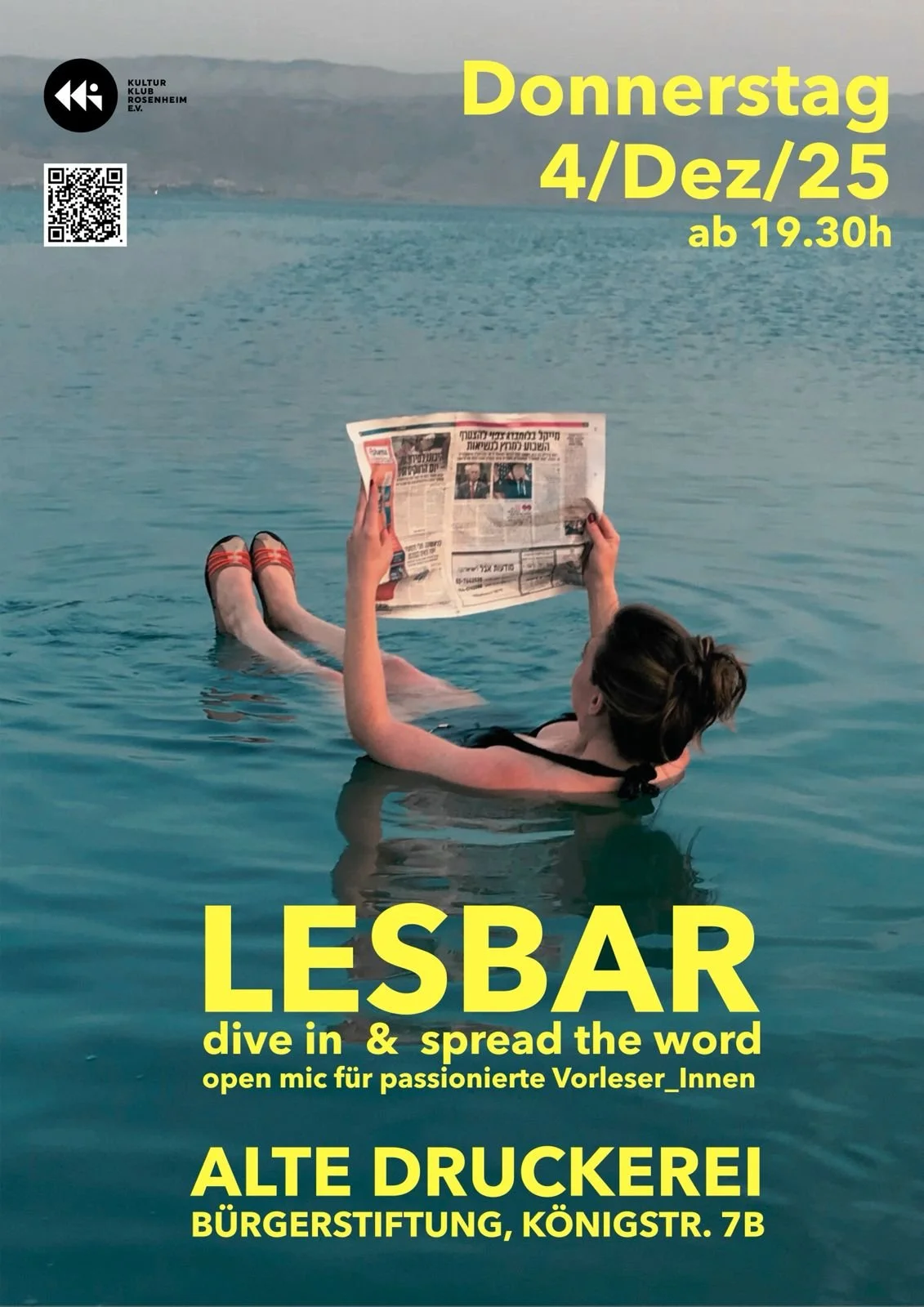Am 4. Dezember laden wir wieder alle passionierten Vorleser:innen und Zuhörer:innen zur LESBAR ein. Diesmal in druckfrischer Szenerie – der Alten Druckerei in den Räumen der Bürgerstiftung, Königstraße 7b in Rosenheim. Los geht´s um 19:30 Uhr.